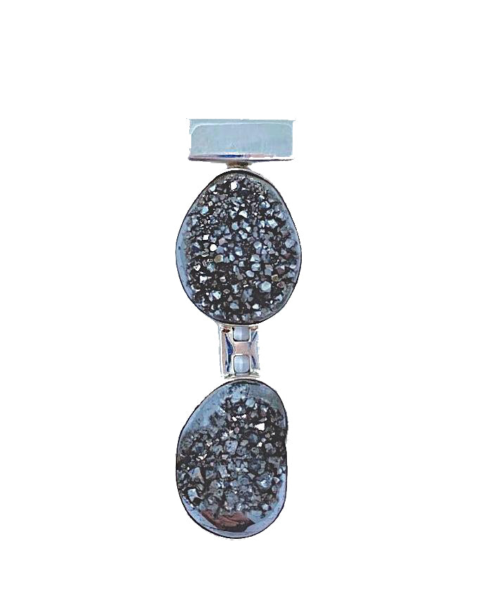 .925 Neck cuff and double Druzy sterling silver pendant set