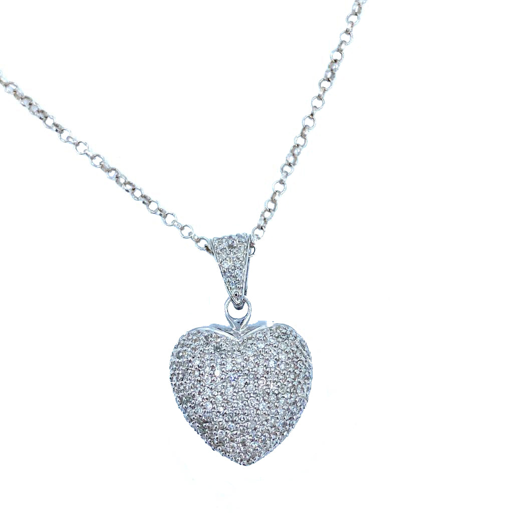 14k White gold diamonds heart necklace