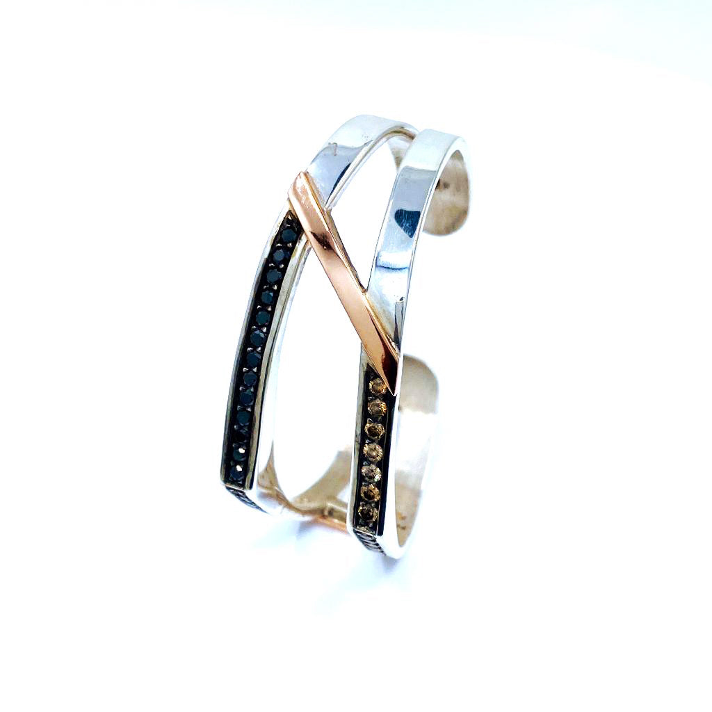 Original Hugo’s Signature Sterling Silver .925 with Rose Gold bar and black/ champagne diamonds adjustable bracelet