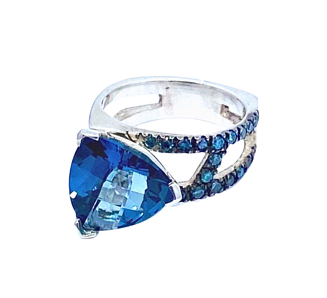 Sterling Silver .925 London Blue Topaz and blue Diamonds Hugo’s Signature ring. Any size.